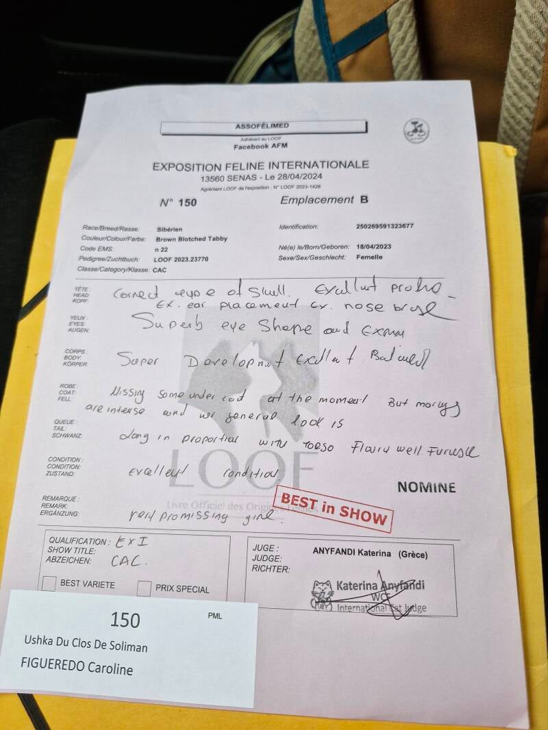 USHKA DU CLOS DE SOLIMAN a fait une exposition en 2024. Elle a eu beaucoup de succès auprès des juges!